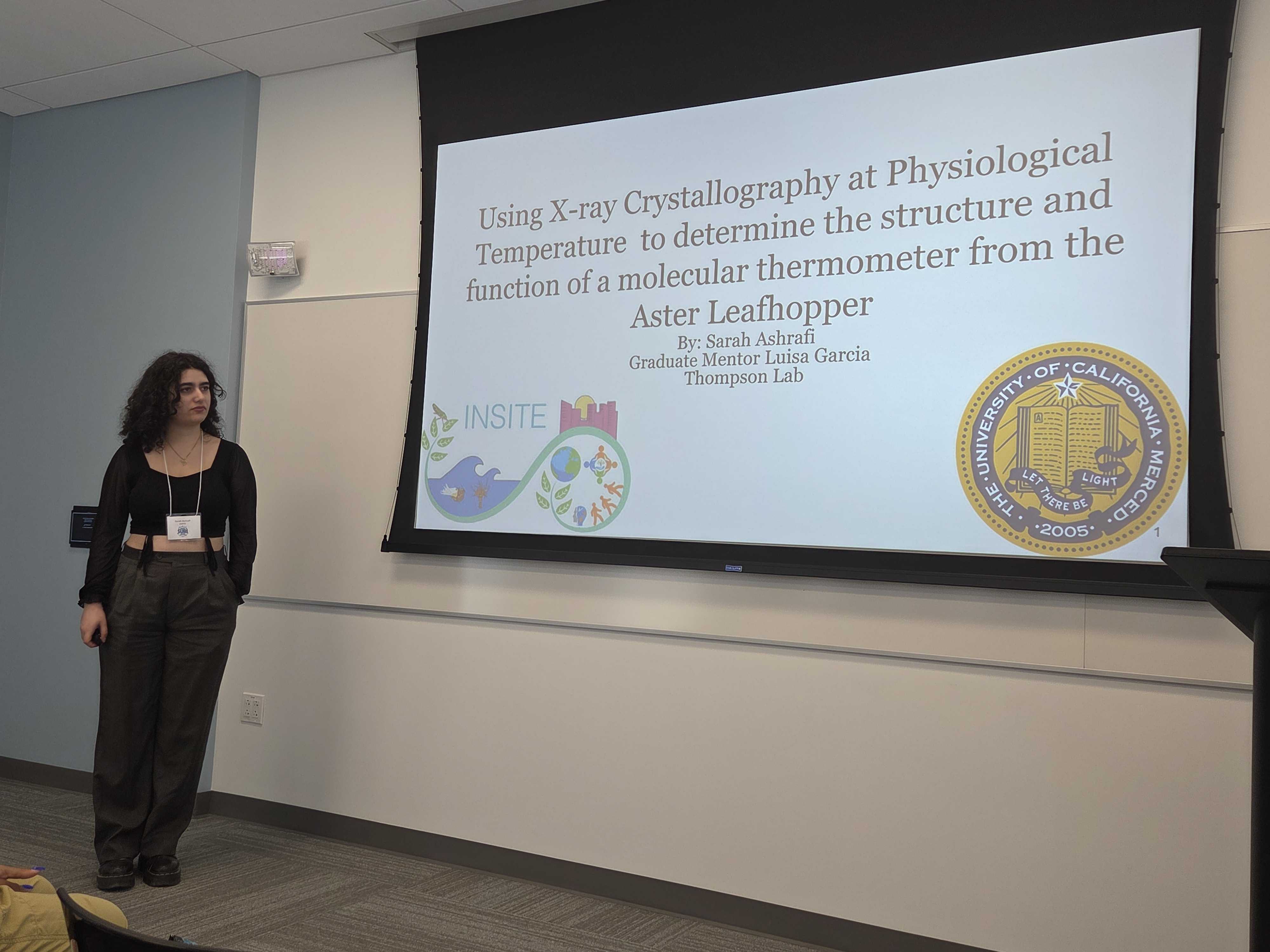 Today, our amazing undergraduate researcher, Sarah, presented her work at the UC Merced UROC (Undergraduate Research Opportunities Center) Symposium! This semester, she worked alongside Luisa on an exciting crystallography project focused on CLK kinases. We were all thrilled to hear about her progress and contributions. Great job, Sarah! we’re proud of you!